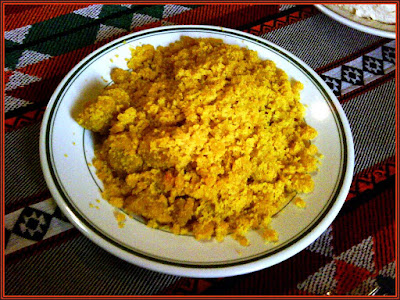 (It is traditional dessert here) It is made of flour, sugar, cardamon, saffron and oil.. tastes yummie)